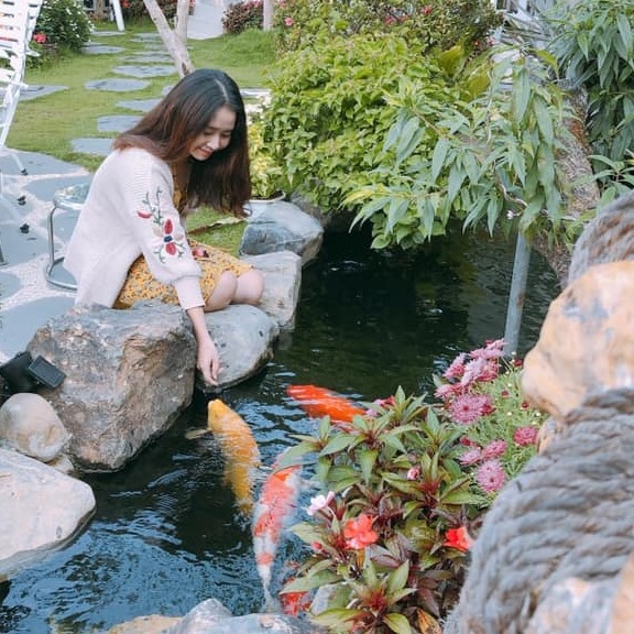 Điều làm nên tên tuổi và sức hút đặc biệt của Cá Koi Homestay – View sân vườn hồ cá cực chill chính là không gian sân vườn xanh mát và hồ cá Koi tuyệt đẹp. Đây không chỉ là nơi lưu trú mà còn là một điểm đến để trải nghiệm. Homestay được miêu tả có một sân vườn rộng, được chăm chút tỉ mỉ với nhiều loại cây xanh, hoa lá, tạo nên một bầu không khí trong lành, dễ chịu. Điểm nhấn không thể không nhắc đến chính là hồ cá Koi lớn, nơi sinh sống của hàng trăm chú cá Koi đủ màu sắc, chủng loại khác nhau. Việc ngắm nhìn đàn cá bơi lội nhẹ nhàng trong làn nước trong veo, hay đơn giản là ngồi bên hồ thưởng thức tách trà nóng giữa tiết trời se lạnh của Đà Lạt, chắc chắn sẽ mang lại cảm giác thư thái tuyệt đối. Đây cũng là một phông nền lý tưởng để bạn chụp những bức ảnh check-in độc đáo, lưu giữ khoảnh khắc đáng nhớ cùng bạn bè và người thân. Ngoài ra, nhiều cơ sở Cá Koi Homestay còn trang bị thêm nhà gỗ giữa vườn, khu BBQ cho những buổi tụ họp ấm cúng, và cả chỗ đậu xe rộng rãi, mang lại sự tiện nghi tối đa cho du khách.