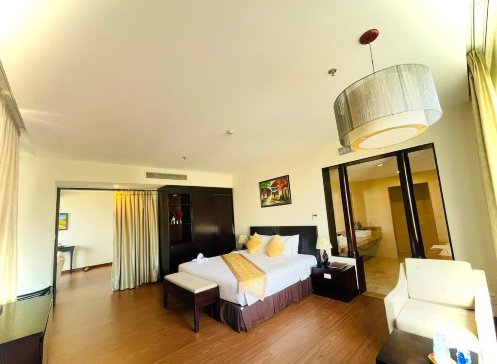 - Điểm nổi bật: Đây là một trong những lựa chọn hàng đầu cho du khách muốn trải nghiệm dịch vụ đẳng cấp. Với thiết kế sang trọng, hiện đại, khách sạn cung cấp đầy đủ tiện nghi từ hồ bơi, nhà hàng, spa cho đến các phòng hội nghị chuyên nghiệp. Dịch vụ tại đây được đánh giá rất tốt, đảm bảo mang lại sự hài lòng tối đa cho khách lưu trú.