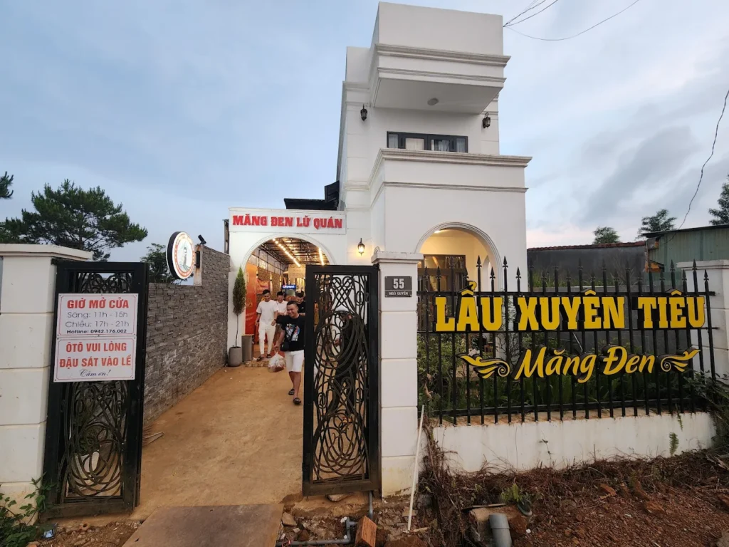 Khi nói đến Review nhà hàng Măng Đen, không thể không nhắc đến Măng Đen Lữ Quán. Đây là một trong những cái tên quen thuộc và được nhiều thực khách yêu thích. Điểm nhấn của quán chính là món lẩu xuyên tiêu trứ danh, mang hương vị đặc trưng khó quên. Nồi lẩu nóng hổi, nghi ngút khói với vị cay nồng, thơm lừng của tiêu, hòa quyện cùng các loại nguyên liệu tươi ngon tạo nên một trải nghiệm ẩm thực vô cùng độc đáo, đặc biệt phù hợp với tiết trời se lạnh của Măng Đen. Ngoài chất lượng món ăn, Măng Đen Lữ Quán còn gây ấn tượng bởi không gian ấm cúng, thoáng đãng và đội ngũ nhân viên nhiệt tình, chu đáo, luôn sẵn sàng phục vụ thực khách một cách tận tâm nhất.