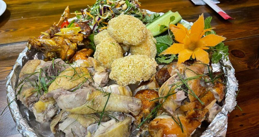 - Gỏi măng với tôm tép, thịt ba rọi băm nhỏ