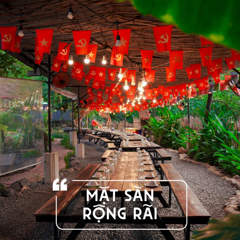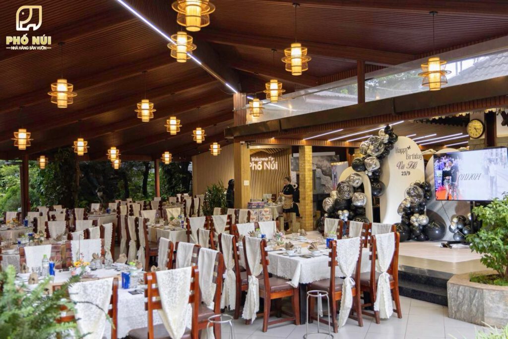 Nhà hàng Phố NúiSân vườn rộng, phong cách núi rừngKhu vực riêng tư, chuyên ẩm thực núi rừng