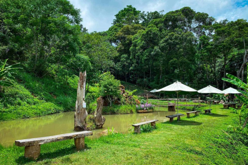 Dưới chân thác là một hồ nước trong xanh, mát lành, sạch sẽ. Đây là địa điểm lý tưởng để du khách dừng chân nghỉ ngơi, thư giãn sau hành trình khám phá. Với những ai yêu thích các hoạt động dưới nước, khu vực này còn thích hợp để trải nghiệm chèo sup, một hoạt động đang ngày càng được yêu thích, giúp bạn ngắm nhìn thác nước từ một góc độ hoàn toàn khác.