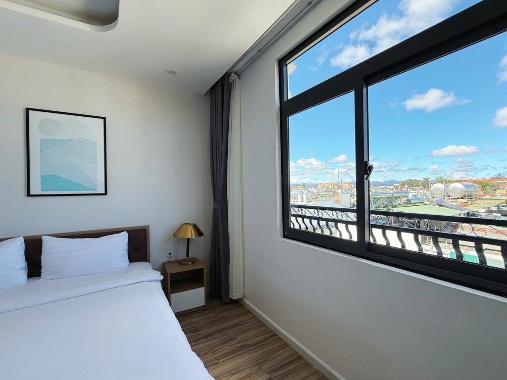 - Điểm nổi bật: Không gian yên bình, view cân bằng giữa phố và núi, đặc biệt có bao gồm bữa sáng, giúp bạn khởi đầu ngày mới tràn đầy năng lượng.