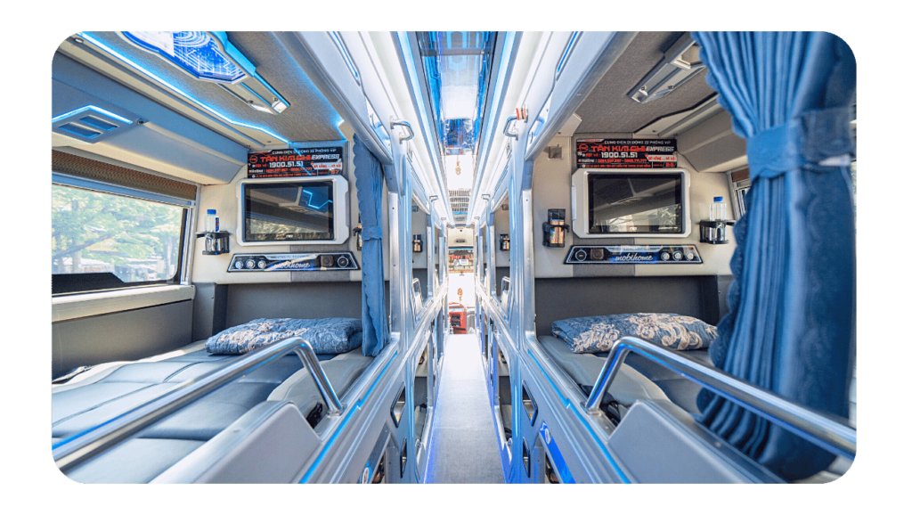 - Phương tiện: Du khách sẽ được trải nghiệm di chuyển bằng xe giường nằm đời mới, có máy lạnh, với sức chứa 44 chỗ. Nếu đoàn có ít khách hơn, các công ty tour có thể sử dụng xe 30-33 chỗ để đảm bảo sự thoải mái.